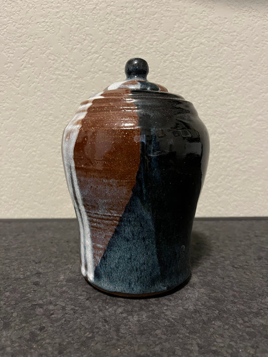Mad Mud Club Lidded Jar- Black, Copper, White drips