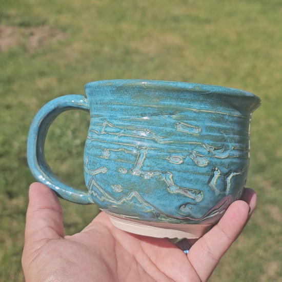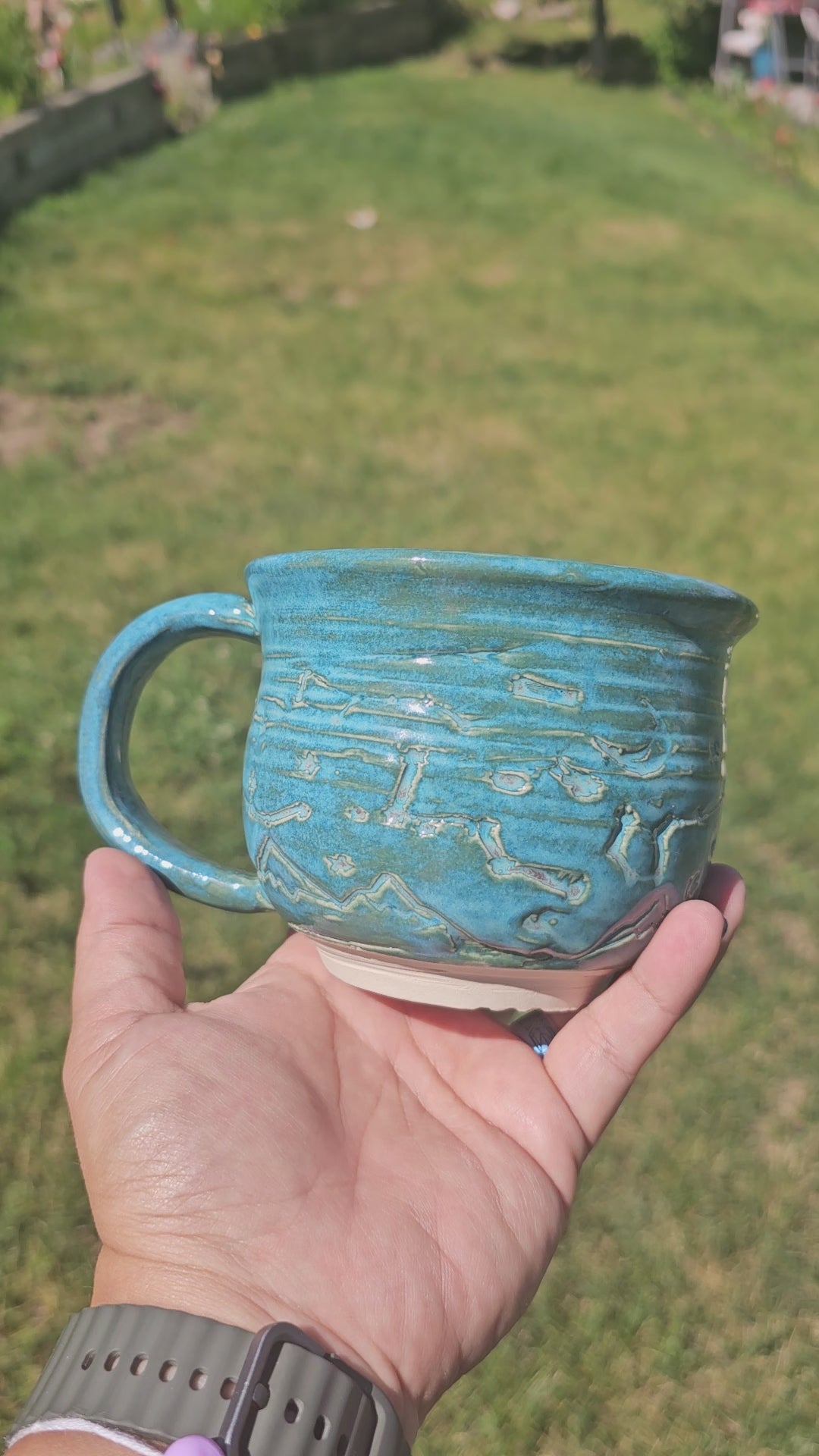 "Get starry-eyed with the Mountain and Stars Mug! Uniquely hand-crafted and adorned with a playful mountain and star design. Perfect for enjoying your favorite beverage with a touch of whimsy. Don't miss out on this one-of-a-kind mug!"